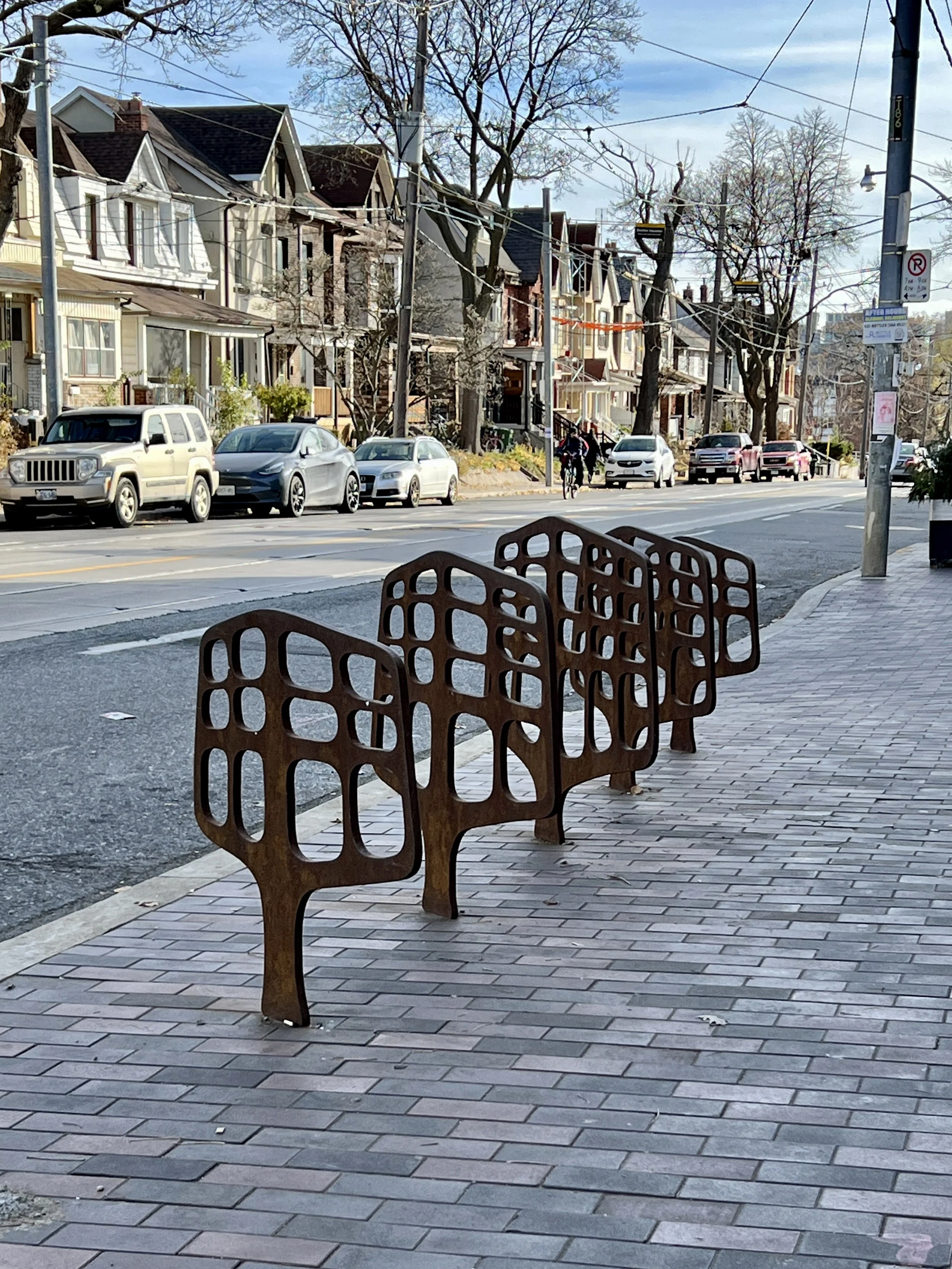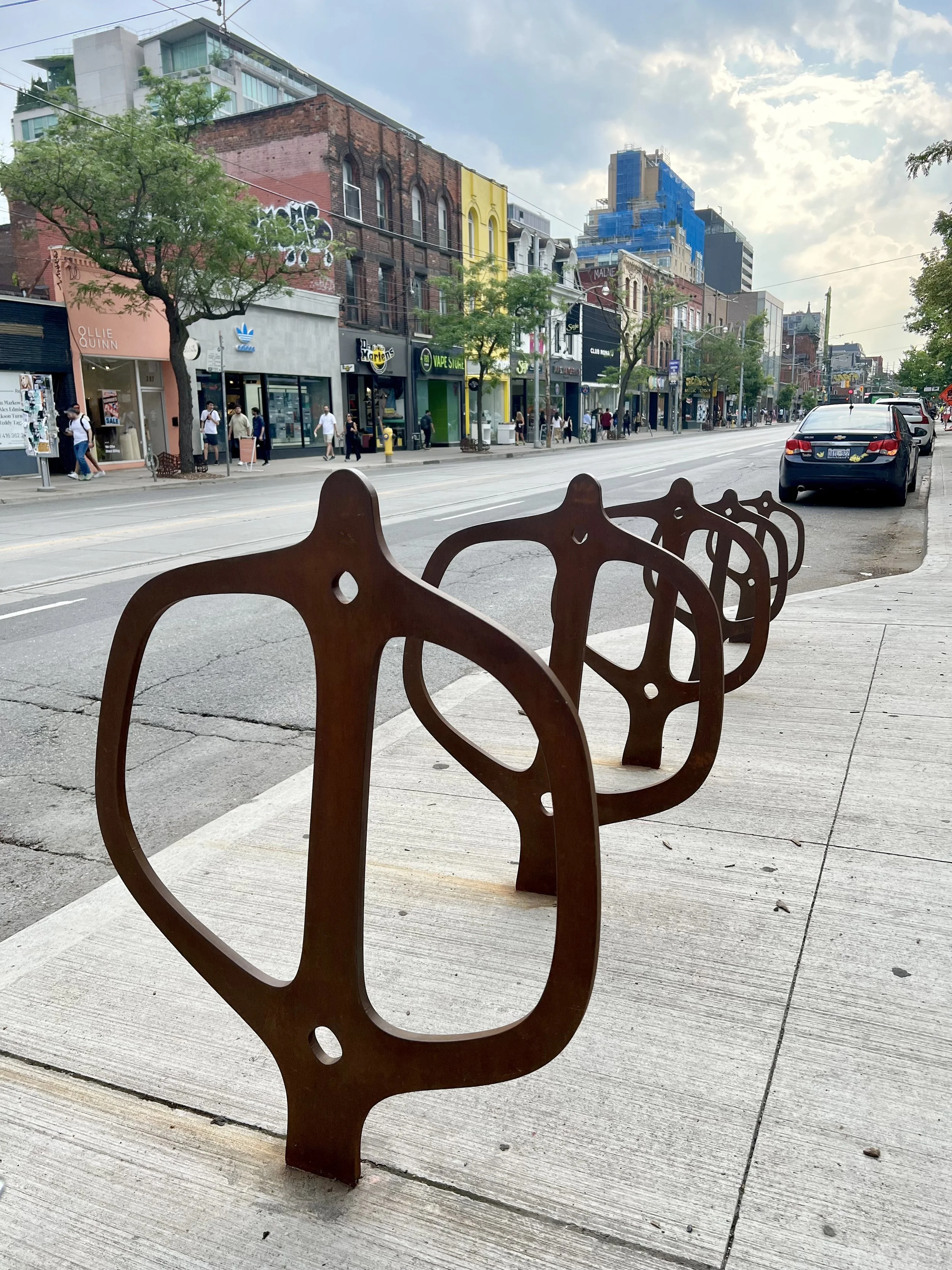 The Weston BIA logo was adapted into a BikePlant form. Overtime multiple stands were installed along the street giving a unique visual identity to the neighborhood.